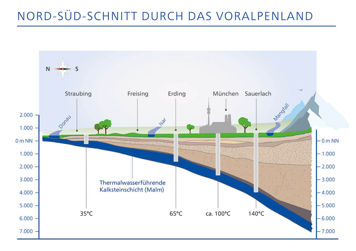 Für die Tiefe Geothermie in München fördern wir heißes Wasser aus einer tiefen Gesteinsschicht. Eine gute Kenntnis dieses Reservoirs ist wichtig, um die Risiken einer Bohrung zu verringern und die Chancen auf Fündigkeit zu erhöhen.